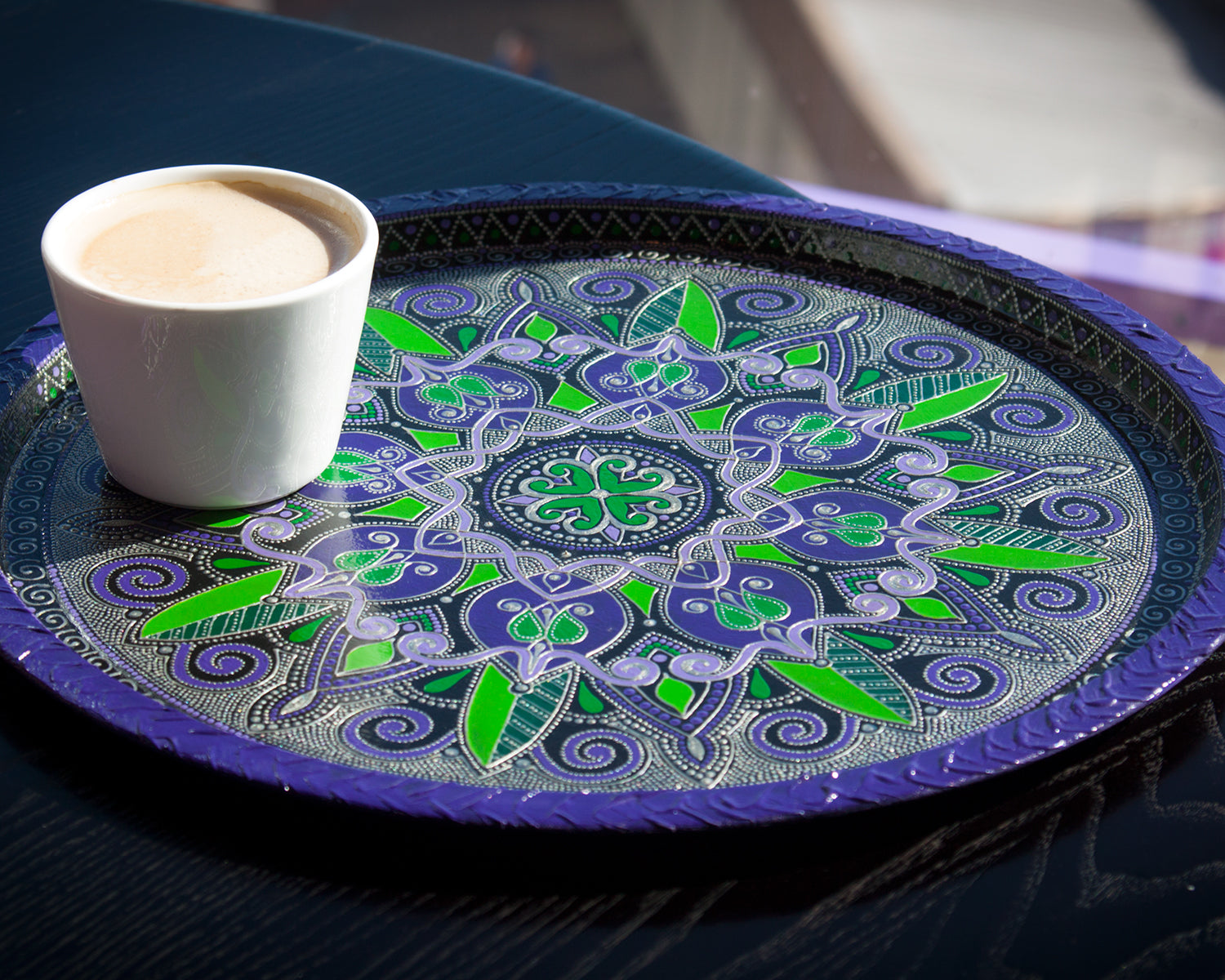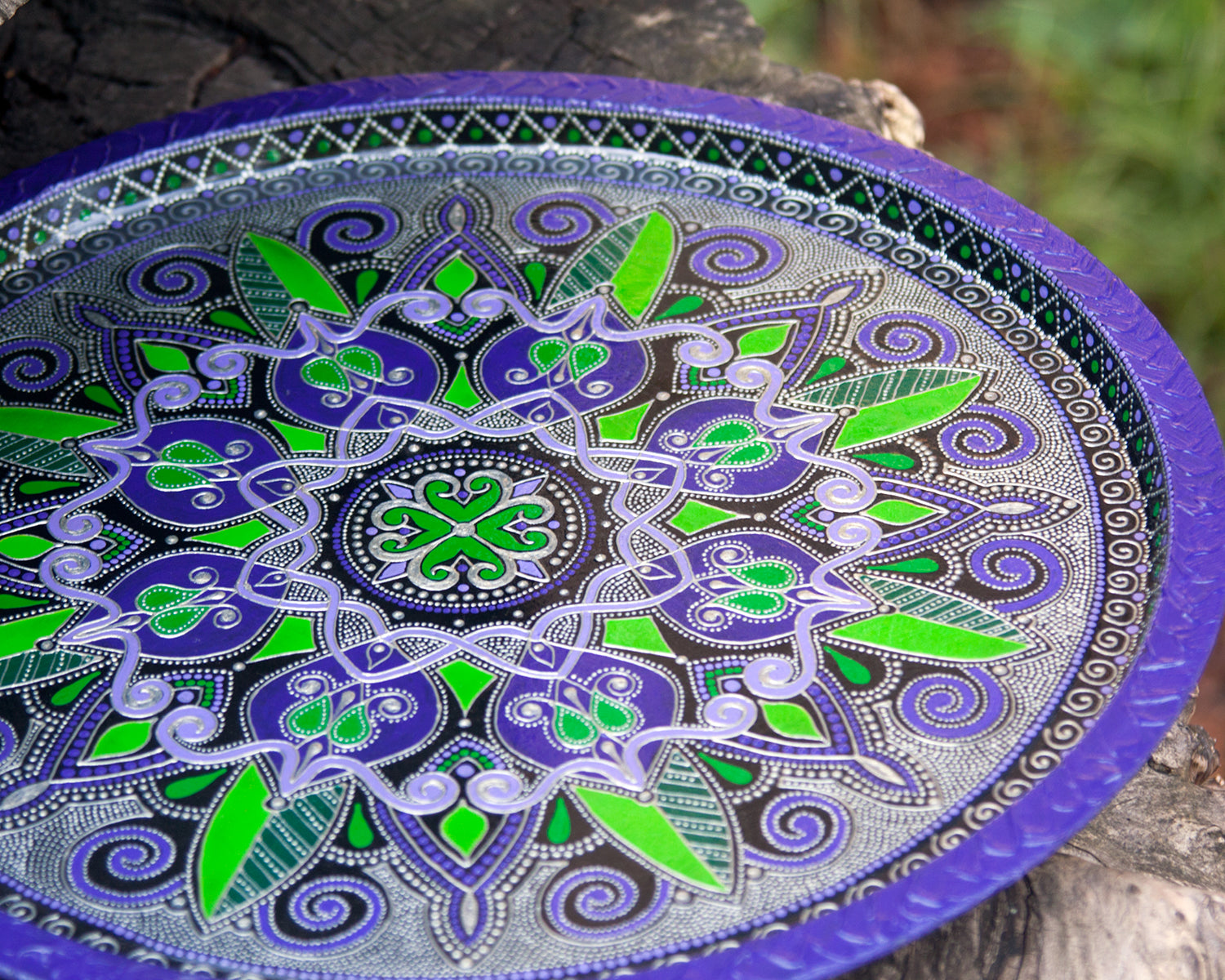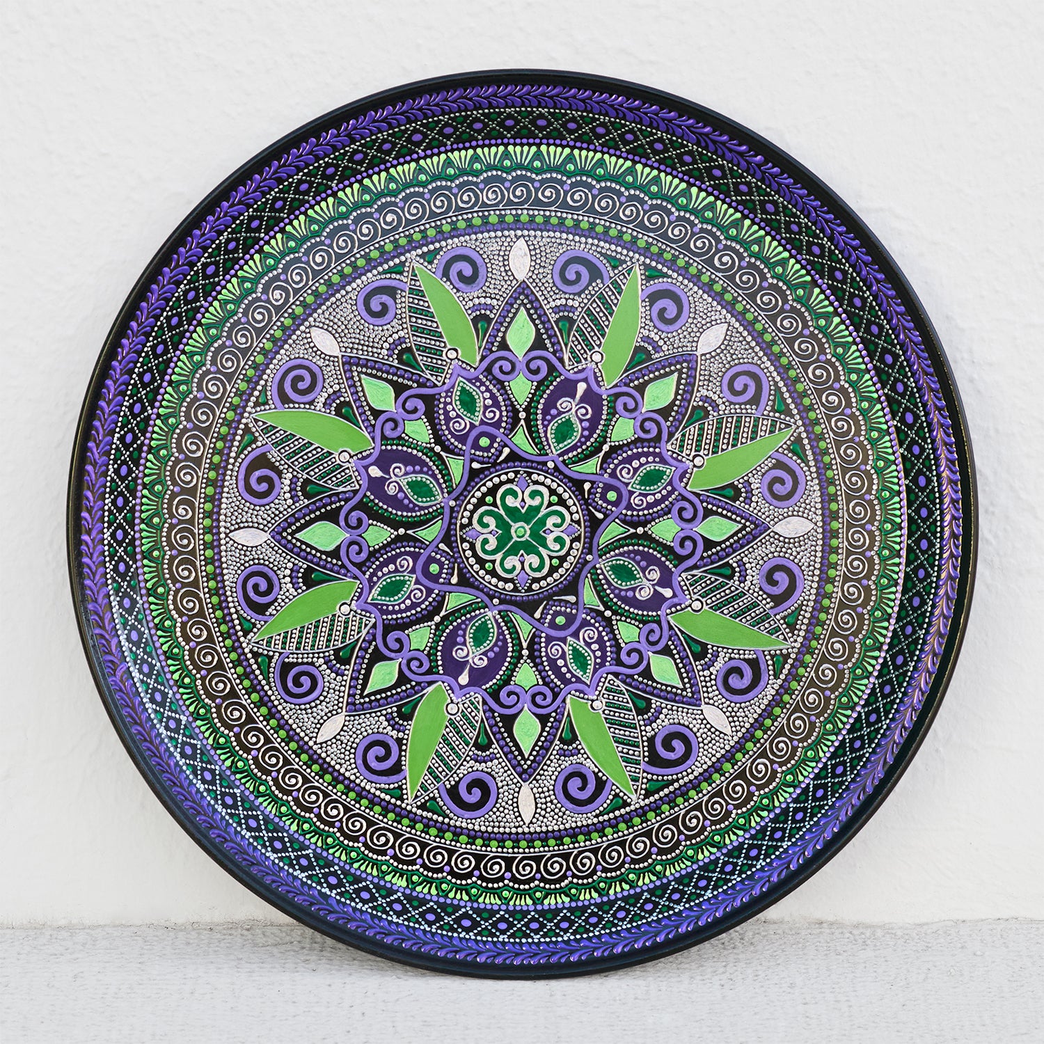 Ce plateau est orné d'un motif combinant des feuilles, des vignes et des volutes, évoquant le charme serein d'un jardin de baies paisible.