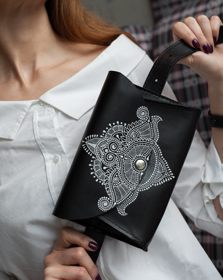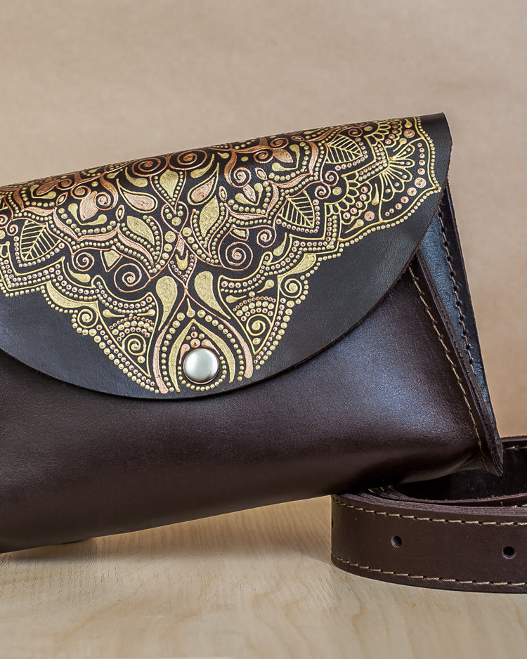 Genuine leather serves as a canvas for intricate hand-painted designs, transforming each bag into a wearable work of art. These belt bags are the perfect accessory for a night out, travel and casual city life. The elegant and attractive, it is a perfect accessory on a date or a meeting, party or concert, can be used as a small evening clutch.