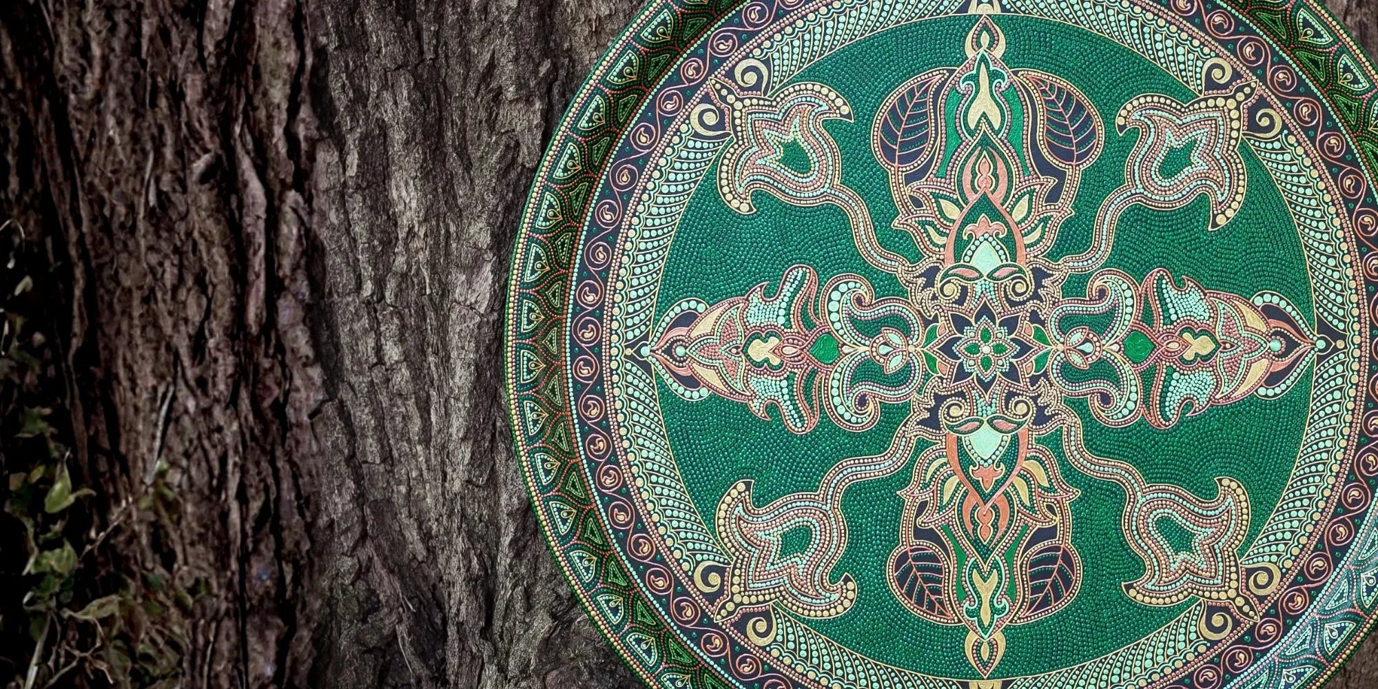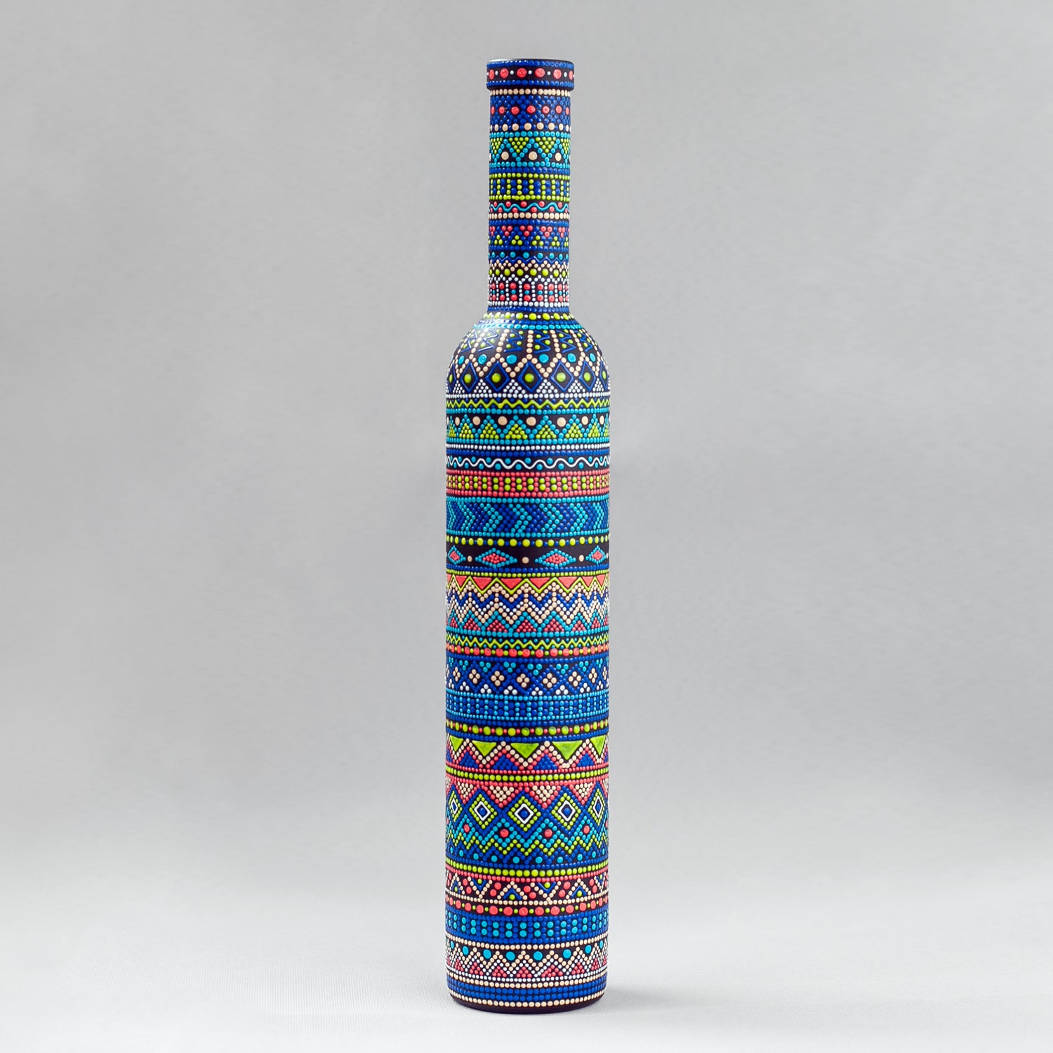 Drawing on research into architecture, geography, and traditional motifs, Nina reinterprets these visual languages into contemporary symbolic objects. This approach has evolved into what she describes as Symbolic Pointillism — a technique where dots and lines gradually form intricate symbolic structures across diverse surfaces and forms.